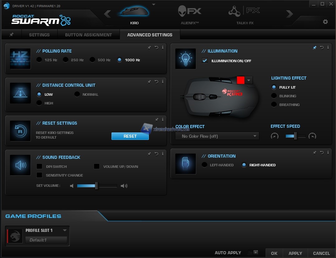 ROCCAT come visto anche in altre nostre recensioni mette a disposizione anche alcune funzioni avanzate quali ‘’AlienFX’’ che ci darà modo di creare un sistema unico di retroilluminazione con i PC Desktop o Notebook Alienware. La compatibilità di tale funzione è al momento relegata tramite il software Swarm alle periferiche che abbiamo citato prima.