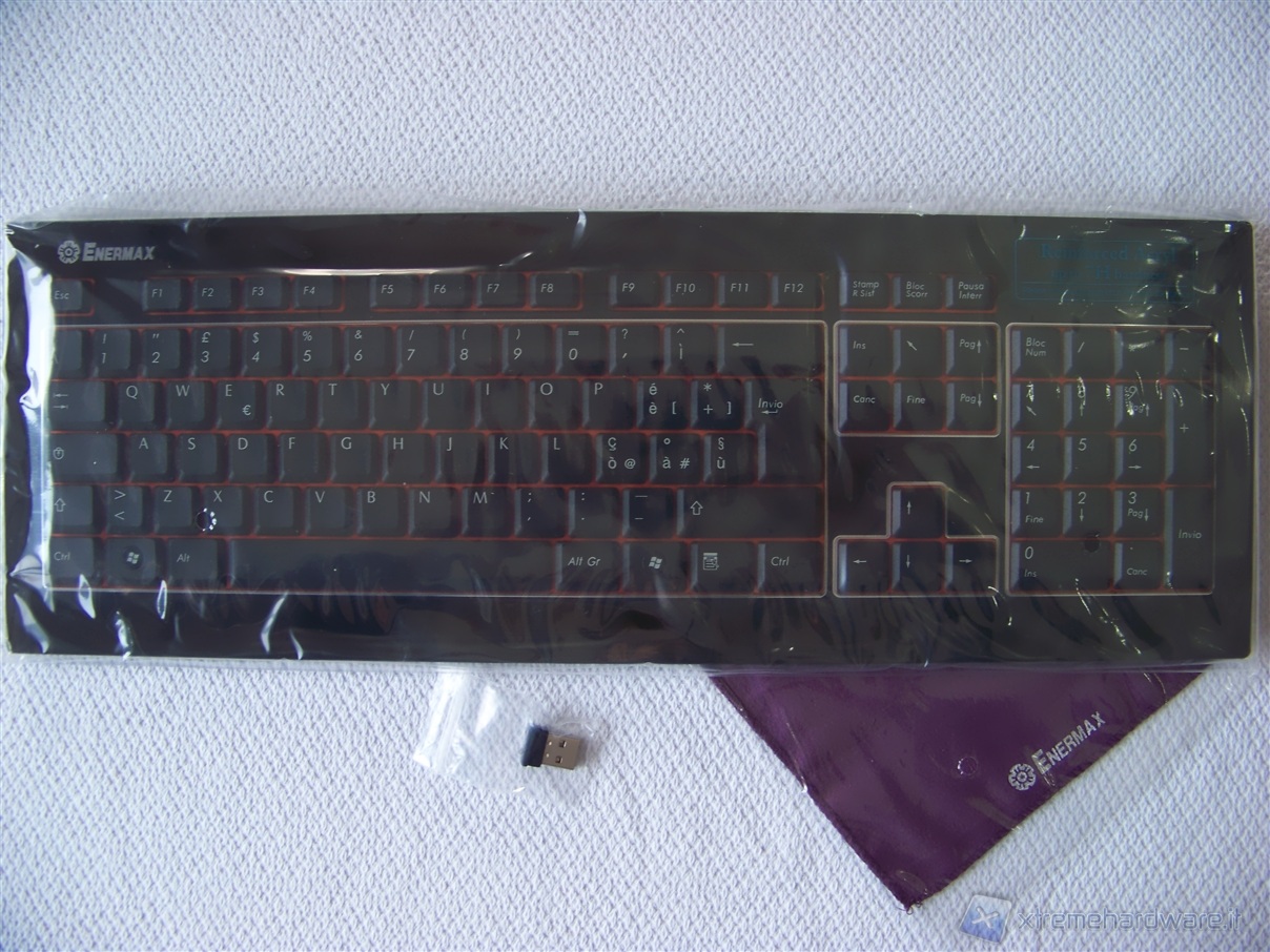 All’interno della confezione non troviamo manuali o dépliant, Enermax si limita ad inserire la tastiera, il ricevitore wireless ed il panno per la pulizia del prodotto.