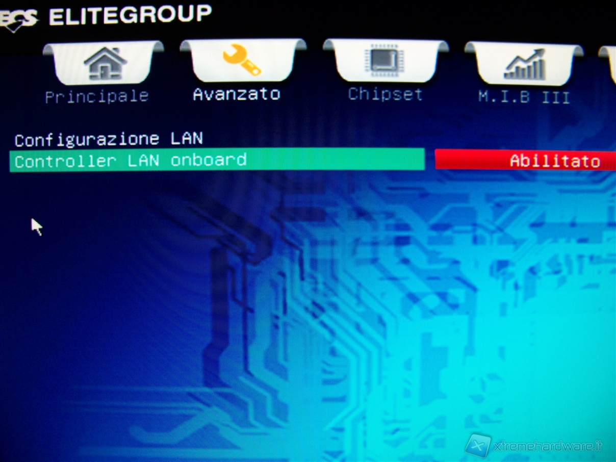Questo menù permette l'abilitazione della scheda di rete LAN onboard.